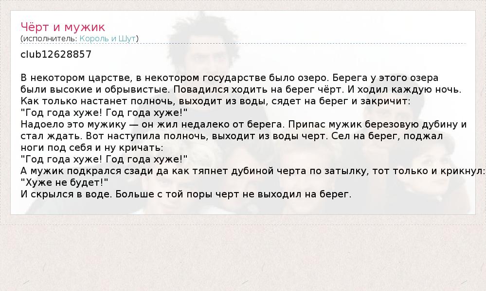 А как ты думаешь, о чем песня "Чёрт и мужик" ?