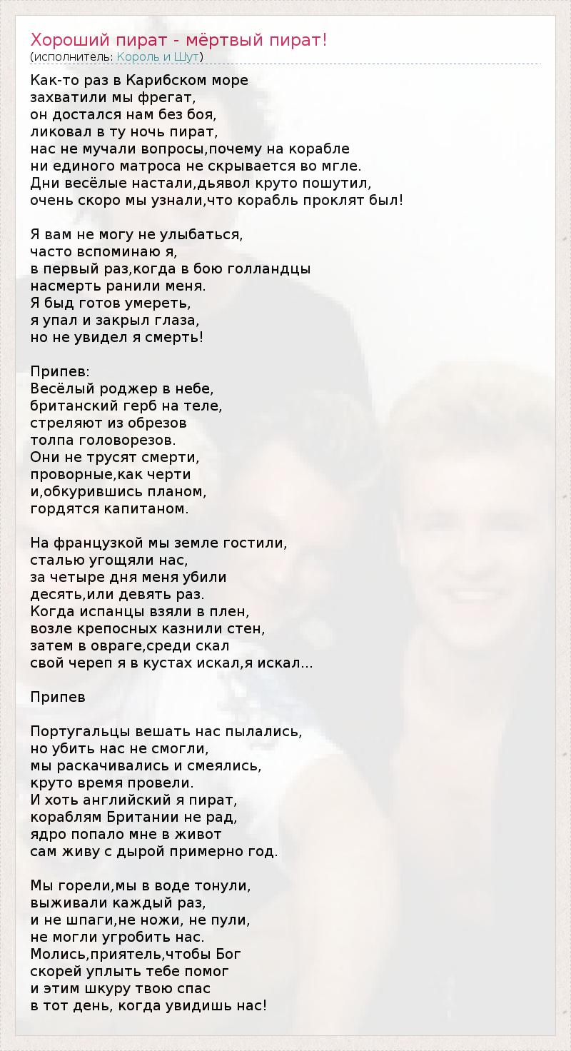 ГлавнаяИсполнителиКороль и ШутХороший пират - мёртвый пират!