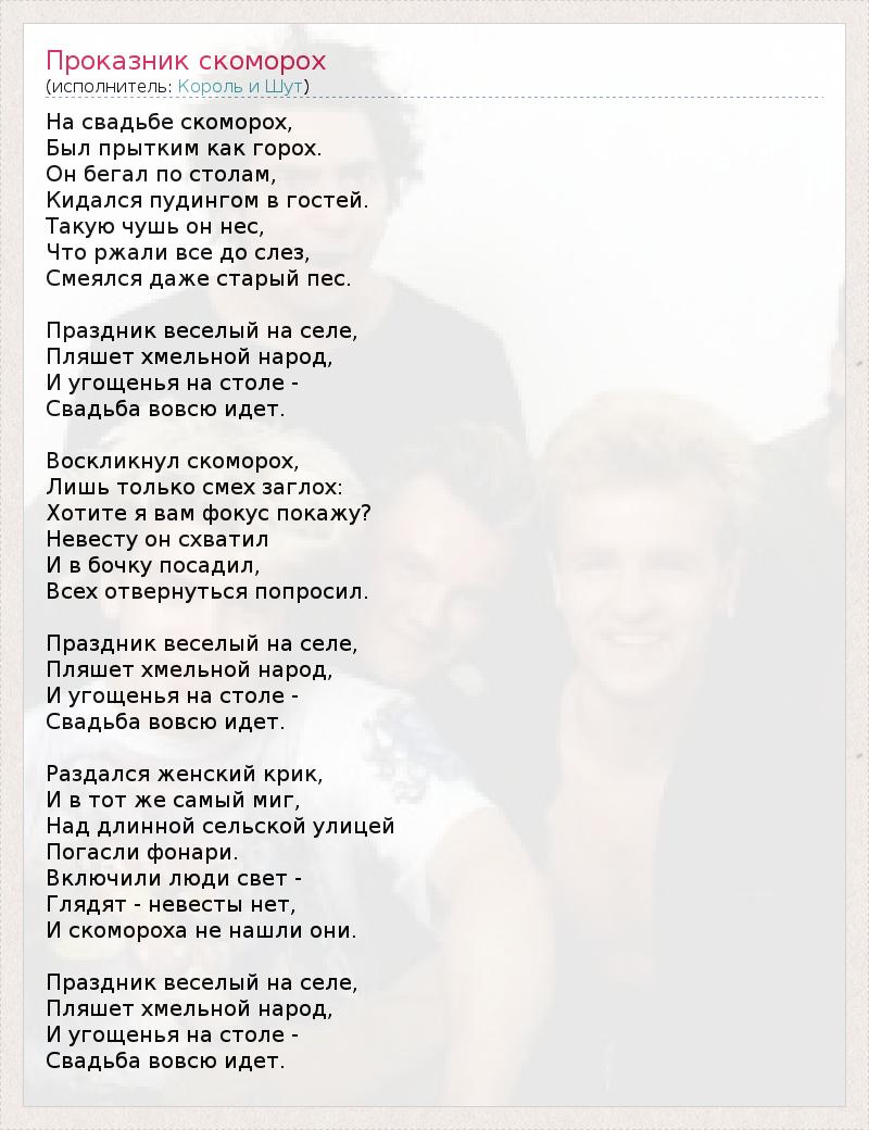 ГлавнаяИсполнителиКороль и ШутПроказник скоморох