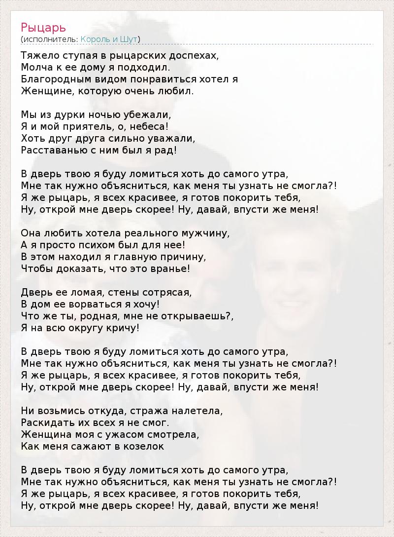 А как ты думаешь, о чем песня "Рыцарь" ?