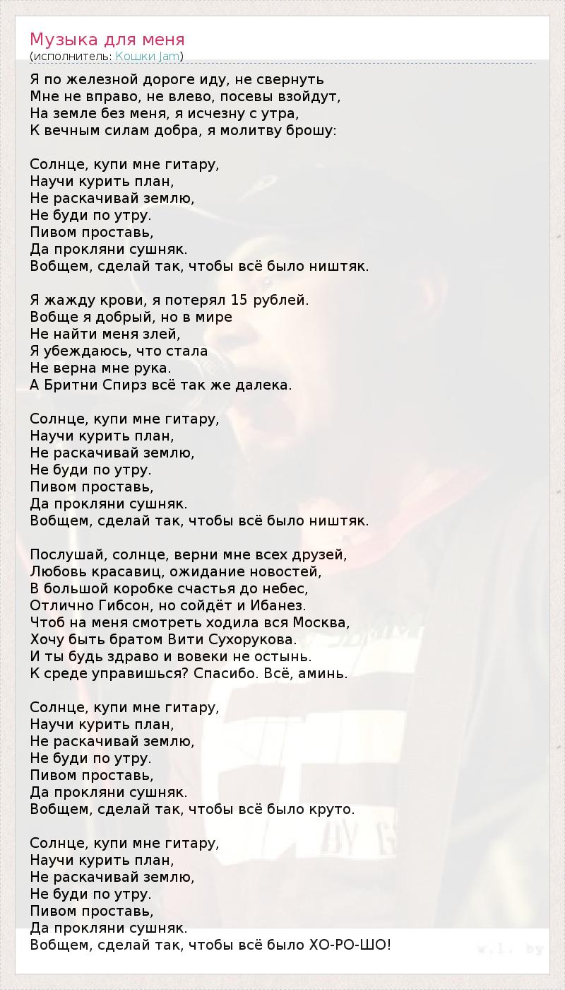 ГлавнаяИсполнителиКошки JamМузыка для меня