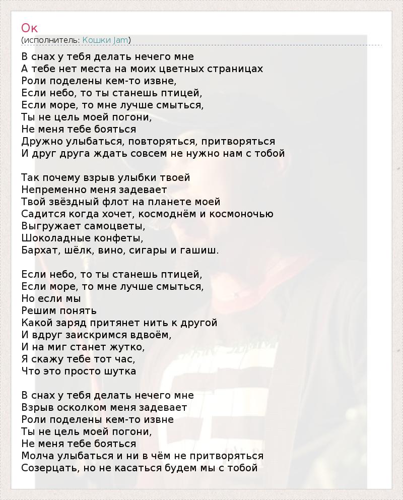 Это интересно:Группа КошкиJam была основана 19-го августа 2001-го года, образовавшись из двух развалившихся шлиссельбургских команд - Линии и Побочного Эффекта. Из Линии в КошкиJam вошли вокалист-гитарист Александр "Сандро" Ордин и бас-гитарист Дмитрий Власов. Из Побочного - гитарист Андрей Нестеров, так же известный под прозвищем FoF, и Волшебник Ударных Инструментов, маэстро Владимир "Бобсон"... продолжение