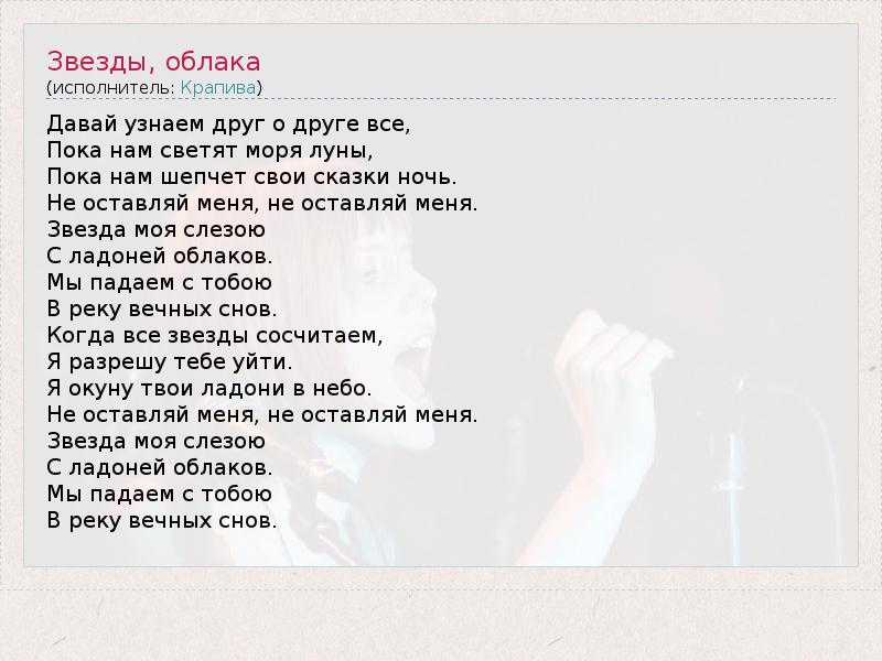 А как ты думаешь, о чем песня "Звезды, облака" ?
