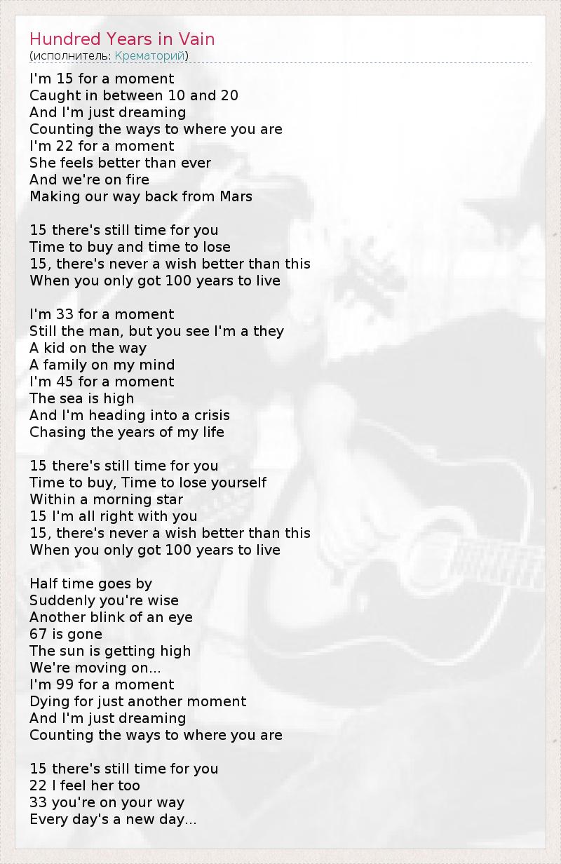 А как ты думаешь, о чем песня "Hundred Years in Vain" ?