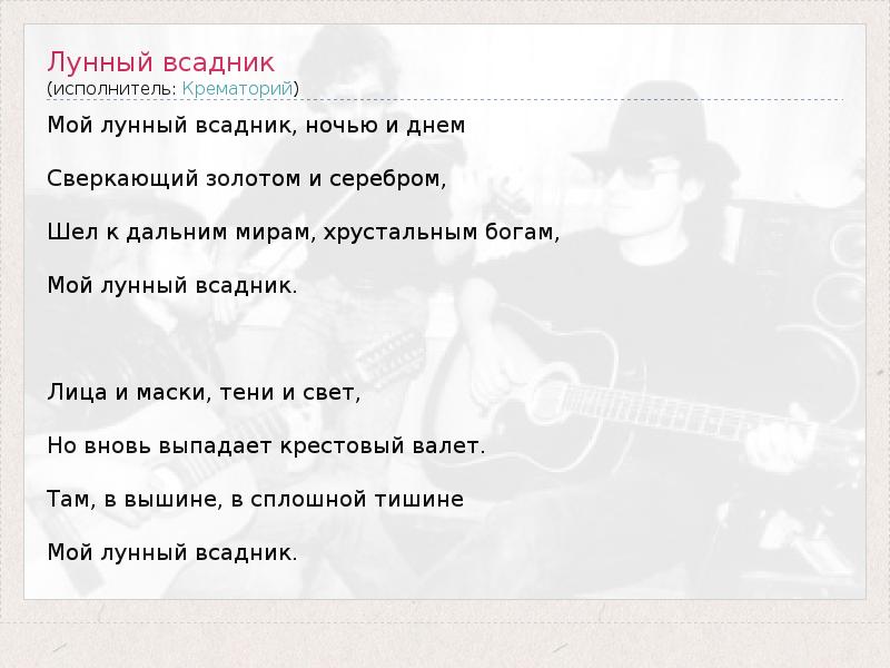 А как ты думаешь, о чем песня "Лунный всадник" ?