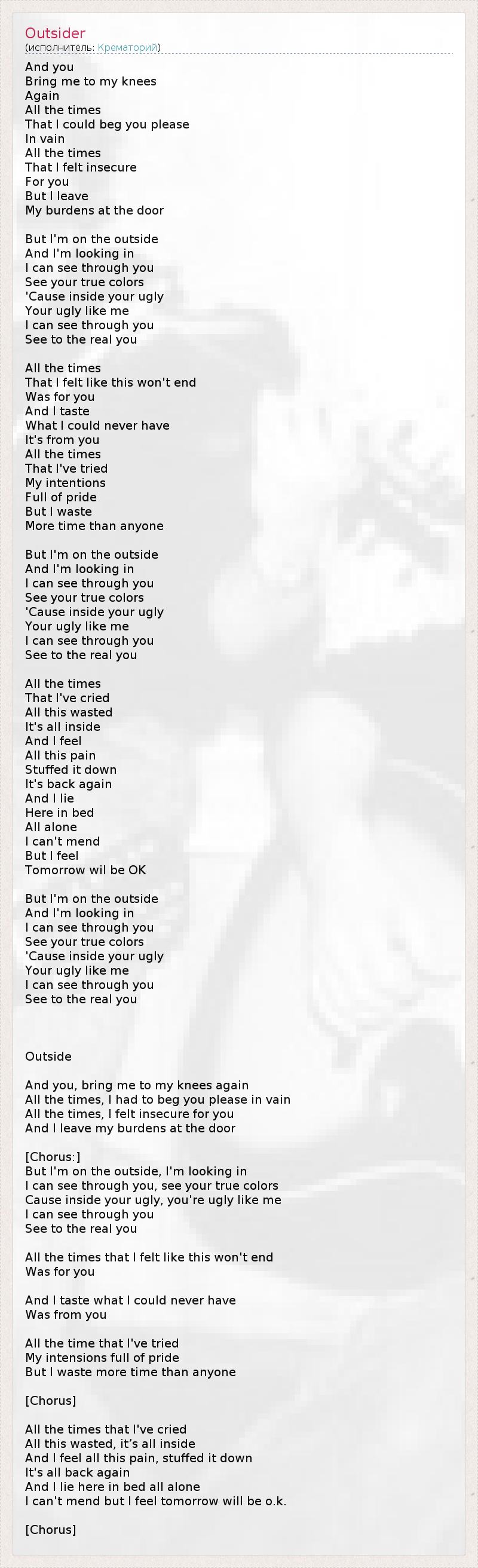 И я вижу тебя насквозь, вижу твои истинные черты –
