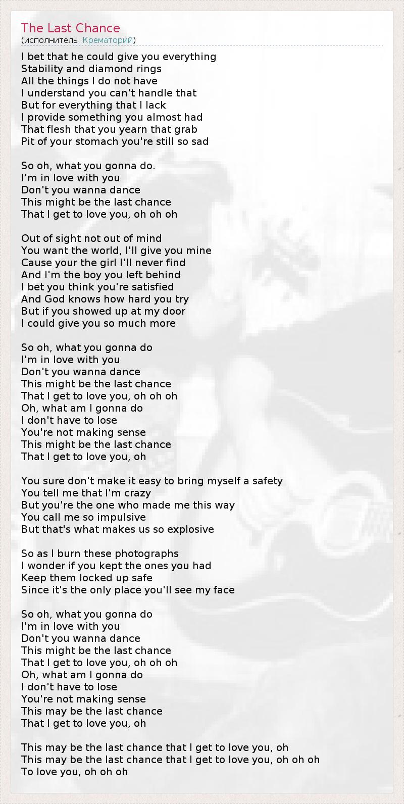 This may be the last chance that I get to love you, oh oh oh