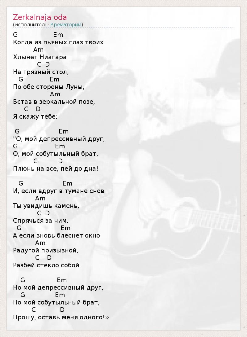 А как ты думаешь, о чем песня "Zerkalnaja oda" ?