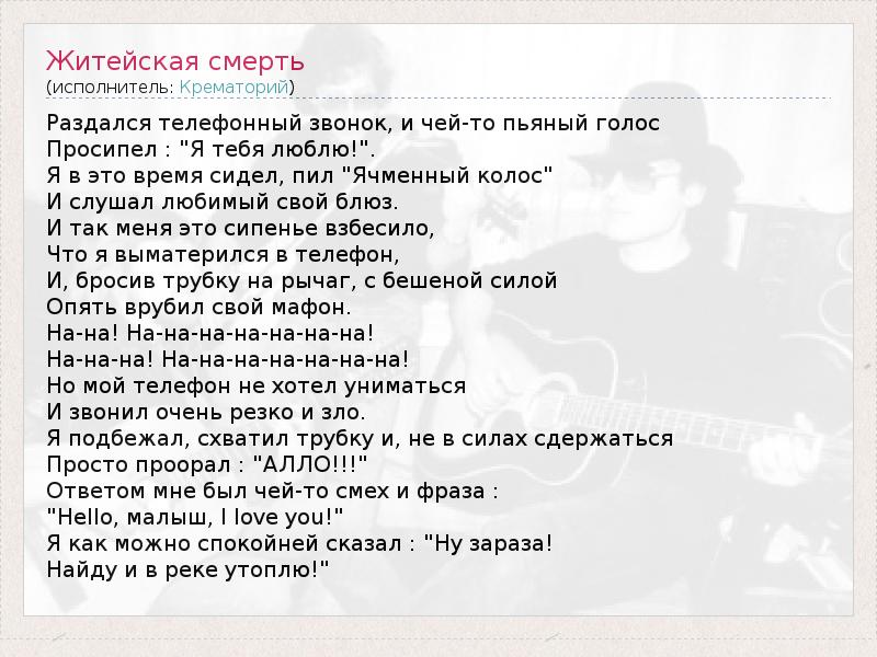 А как ты думаешь, о чем песня "Житейская смерть" ?