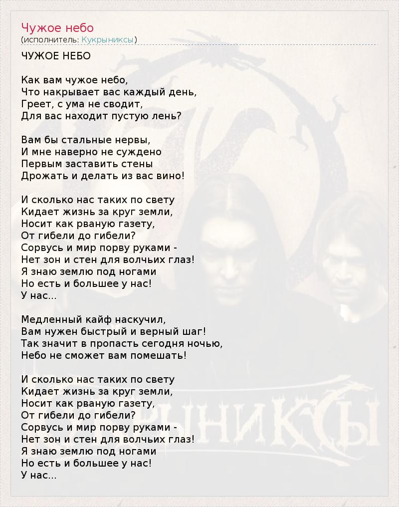 А как ты думаешь, о чем песня "Чужое небо" ?