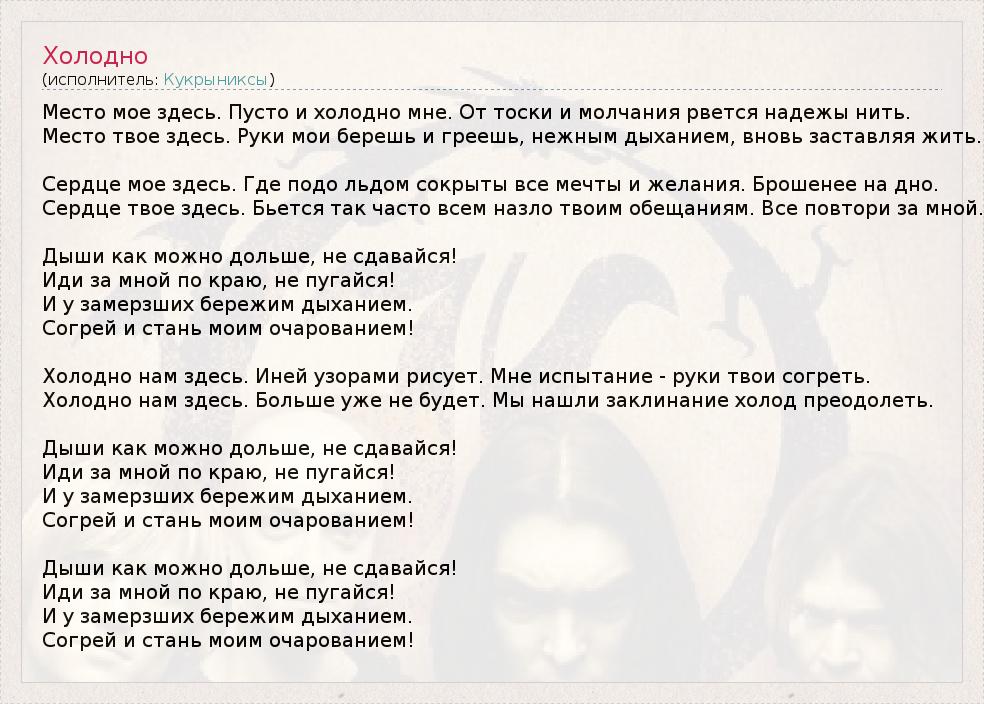 Место мое здесь. Пусто и холодно мне. От тоски и молчания рвется надежы нить.