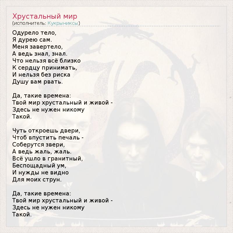 ГлавнаяИсполнителиКукрыниксыХрустальный мир