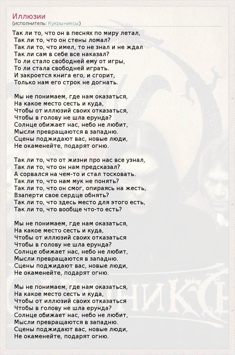А как ты думаешь, о чем песня "Иллюзии" ?