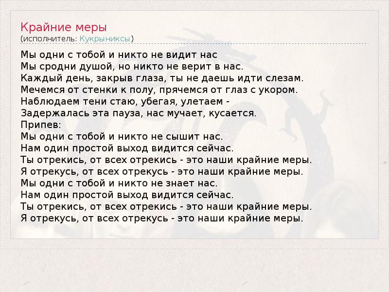 А как ты думаешь, о чем песня "Крайние меры" ?
