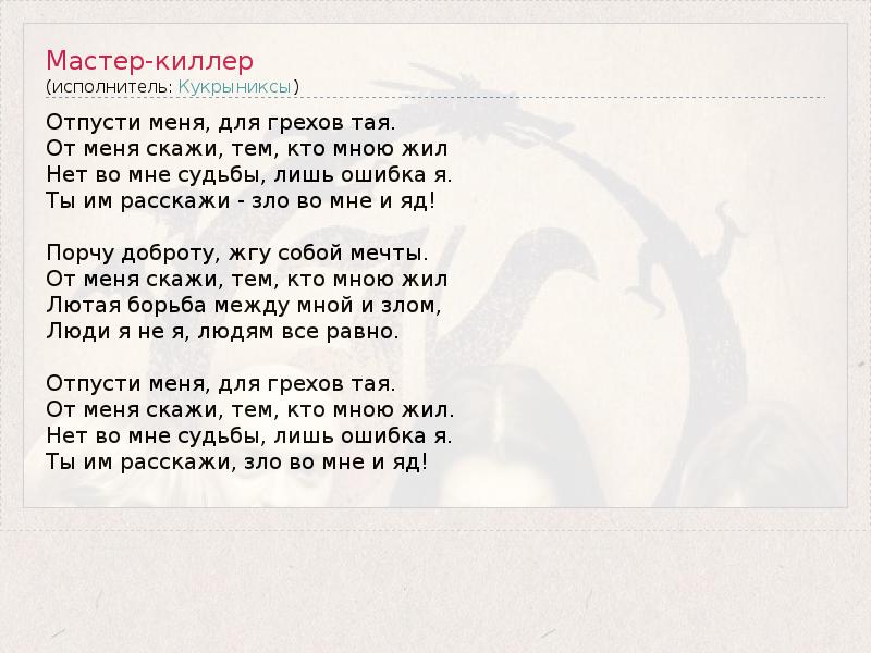 А как ты думаешь, о чем песня "Мастер-киллер" ?