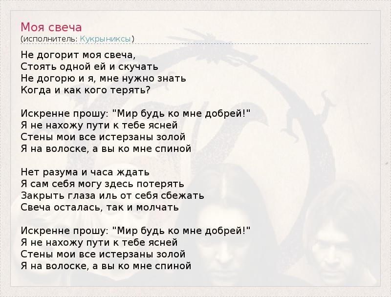 А как ты думаешь, о чем песня "Моя свеча" ?