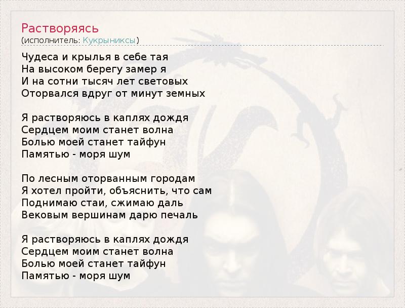 А как ты думаешь, о чем песня "Растворяясь" ?