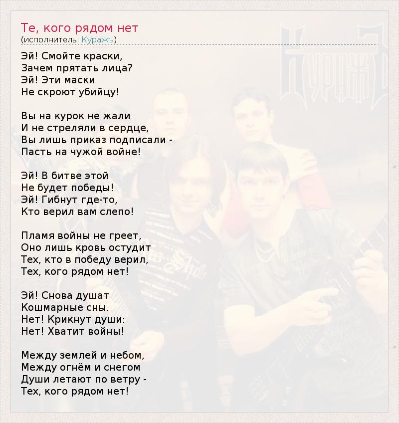ГлавнаяИсполнителиКуражъТе, кого рядом нет