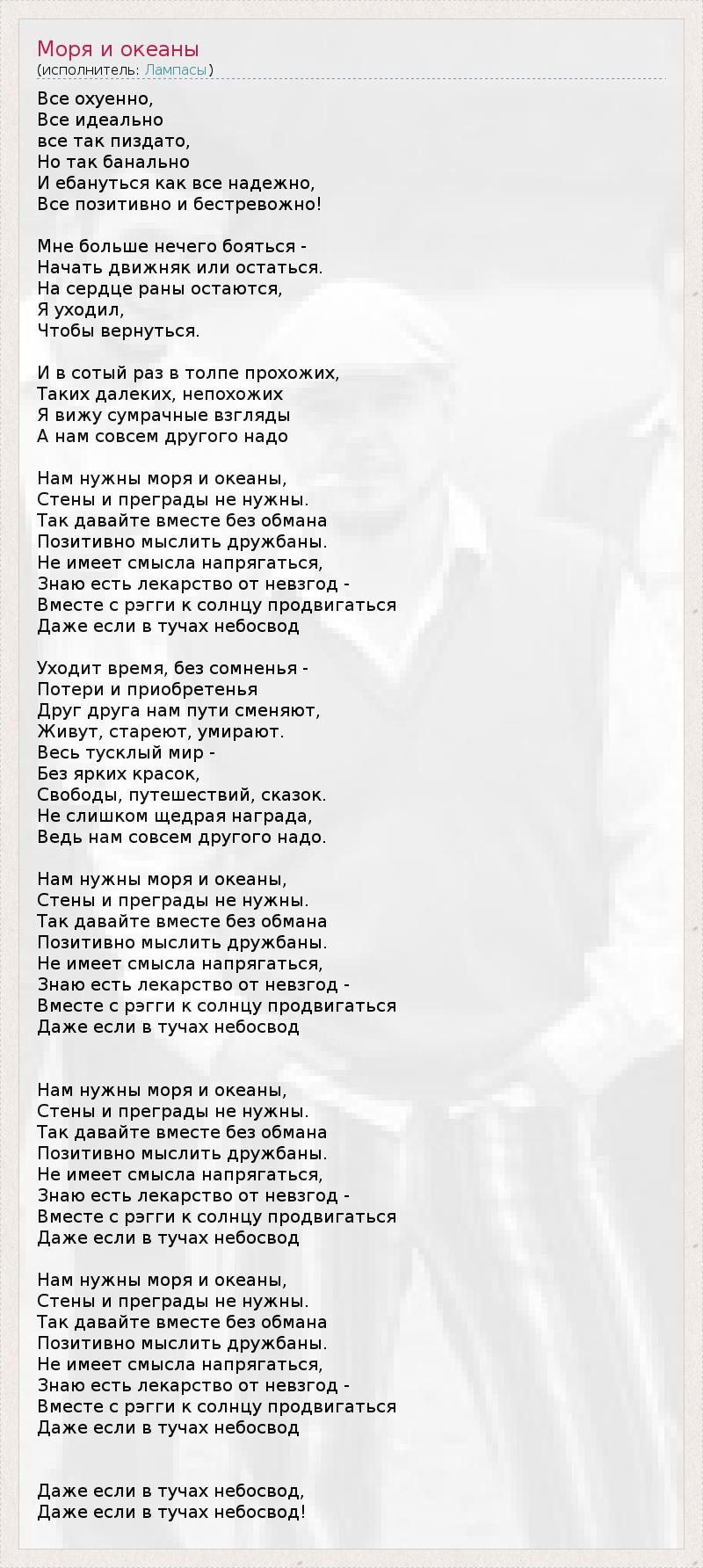 А как ты думаешь, о чем песня "Моря и океаны" ?