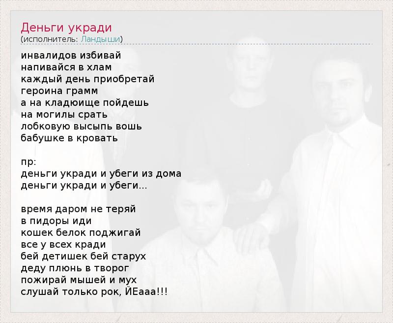 ГлавнаяИсполнителиЛандышиДеньги укради