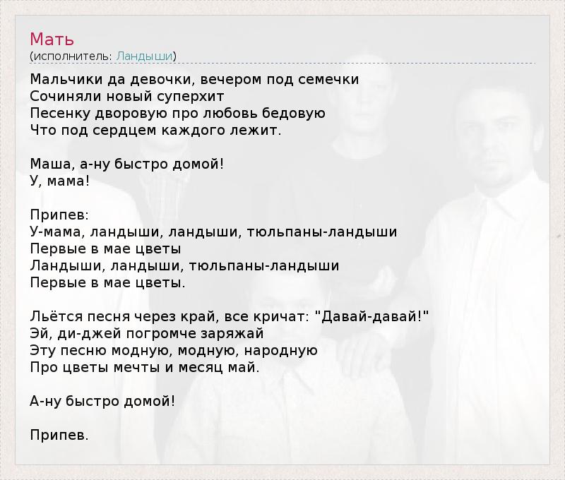 У-мама, ландыши, ландыши, тюльпаны-ландыши