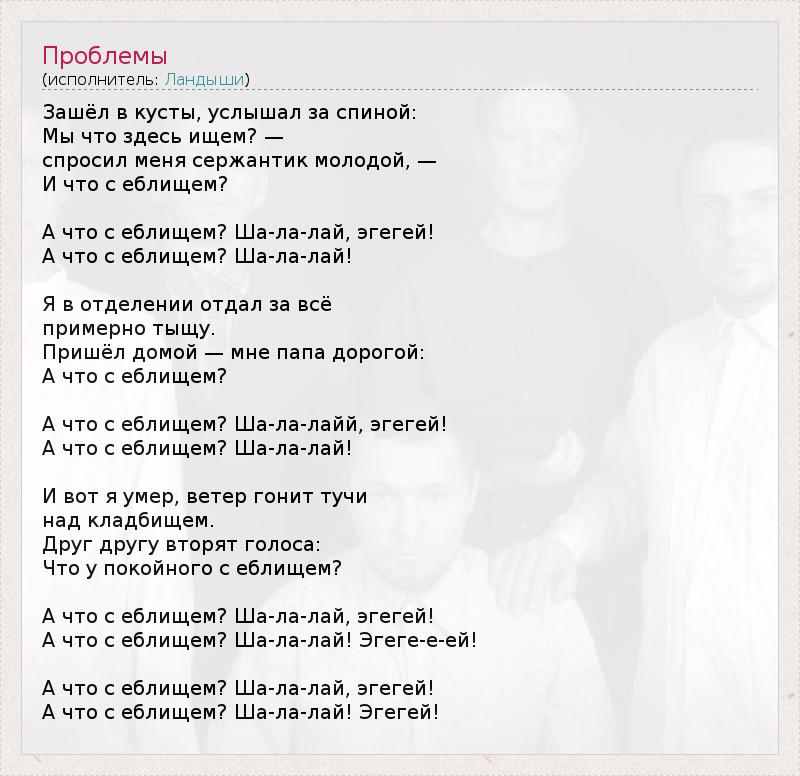 А что с еблищем? Ша-ла-лай! Эгеге-е-ей!