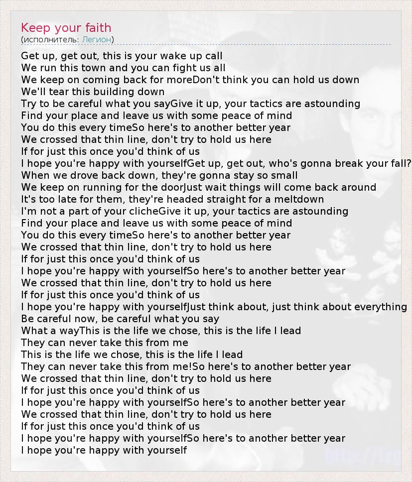А как ты думаешь, о чем песня "Keep your faith" ?