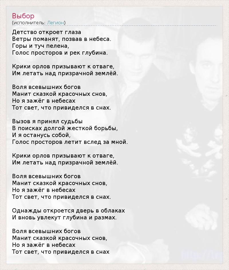 А как ты думаешь, о чем песня "Выбор" ?