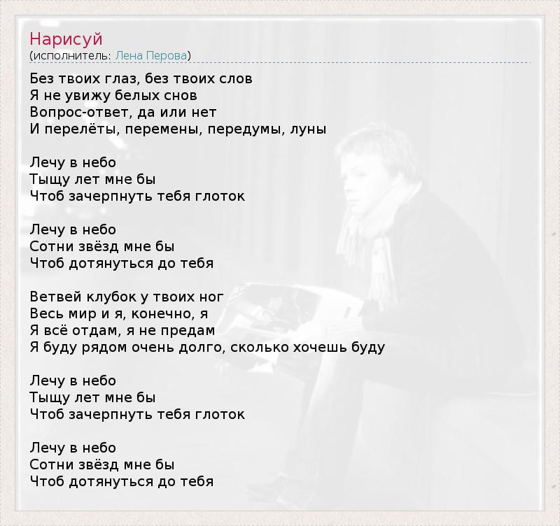А как ты думаешь, о чем песня "Нарисуй" ?