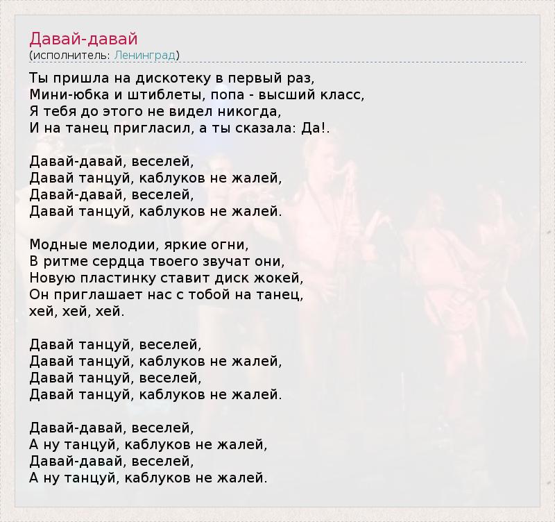 А как ты думаешь, о чем песня "Давай-давай" ?