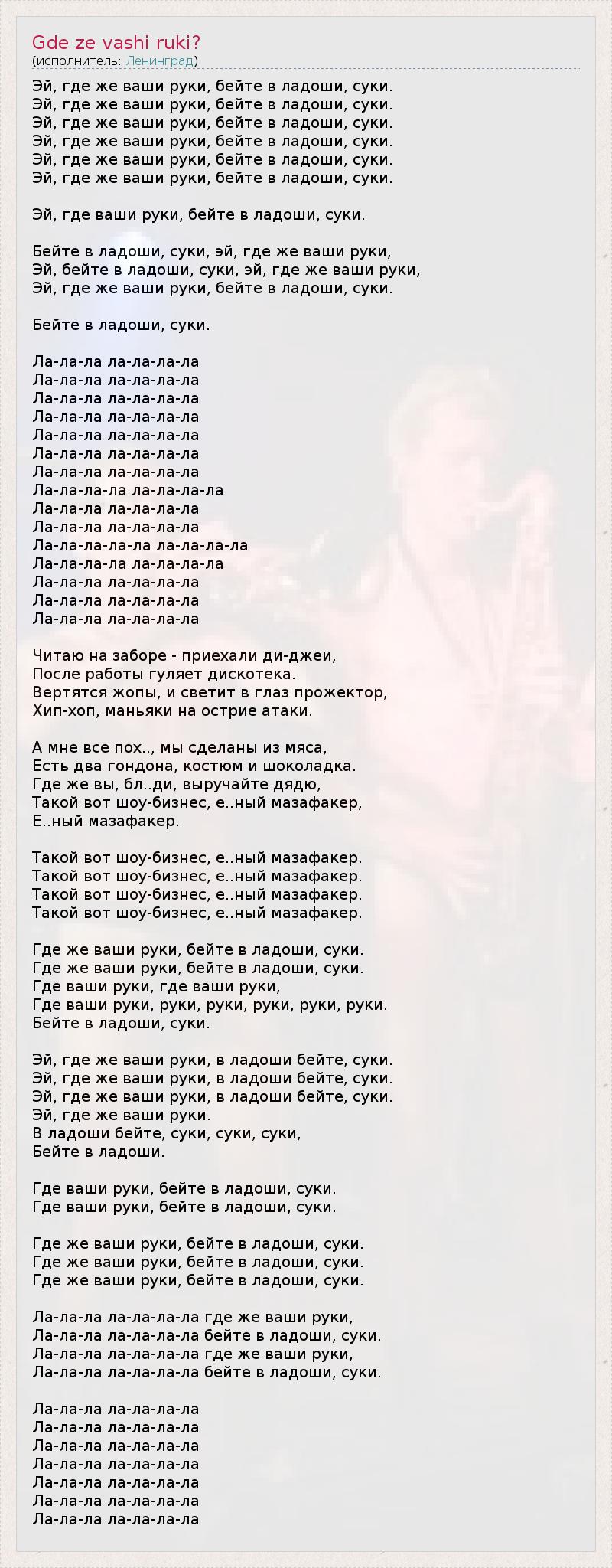 Эй, где же ваши руки, бейте в ладоши, суки.