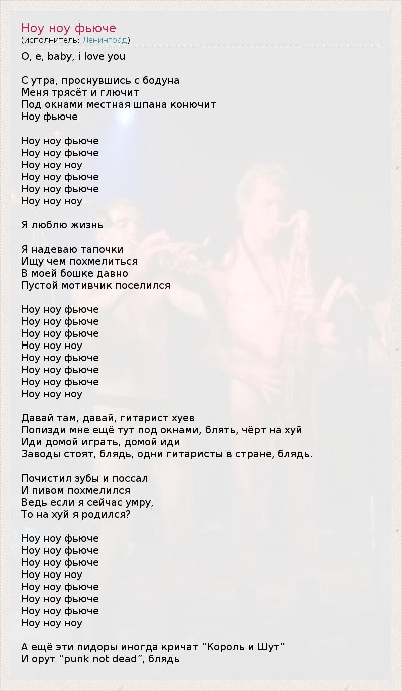 А как ты думаешь, о чем песня "Ноу ноу фьюче" ?