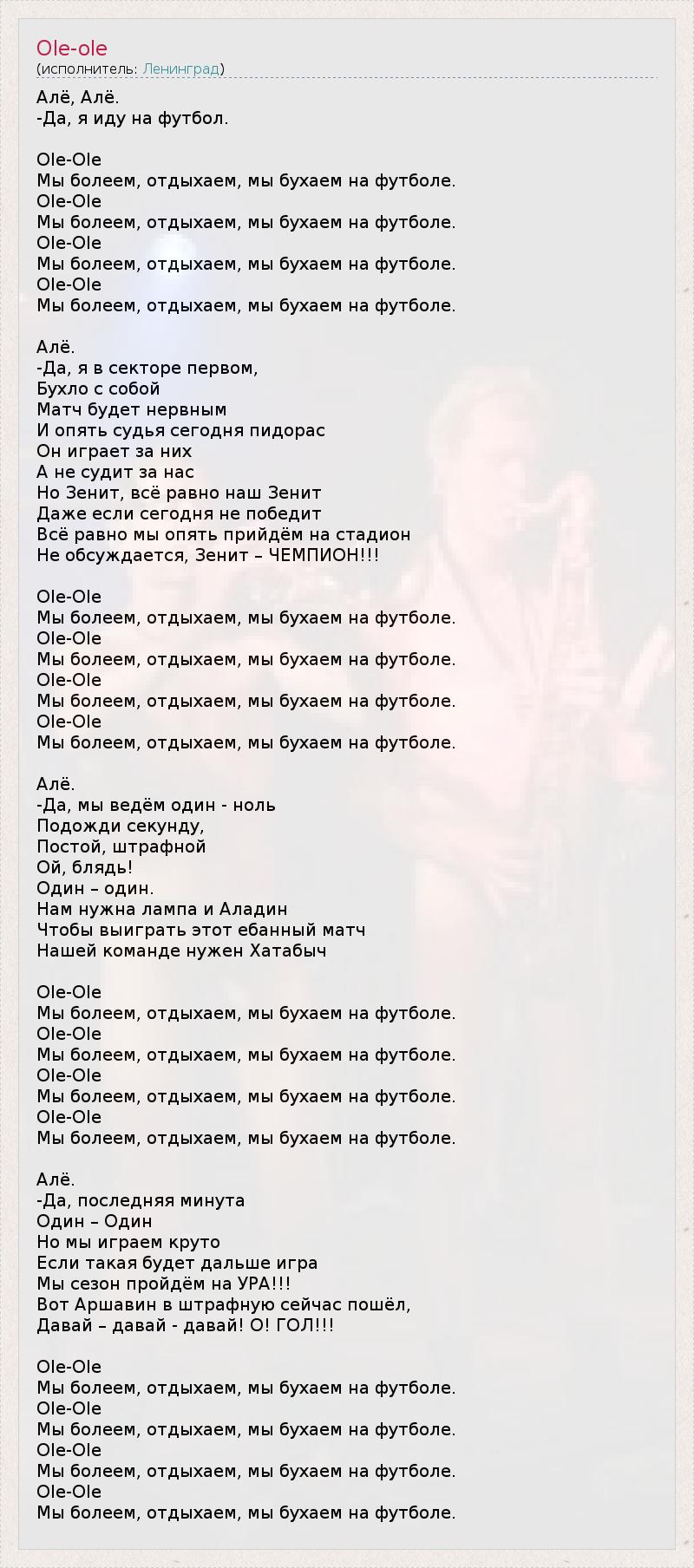А как ты думаешь, о чем песня "Ole-ole" ?
