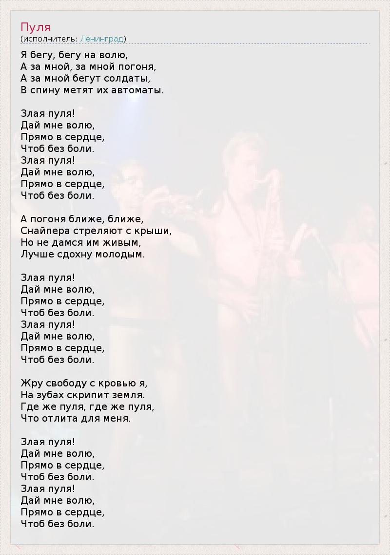 Это интересно:Оф. сайт | Facebook | YouTube | Twitter | ВКонтакте | iTunes Группу «Ленинград» правильней было бы определить как оркестр. Духовая секция — тромбон, саксофон, труба, туба — в сочетании с ксилофоном, гитарами, барабанами... продолжение
