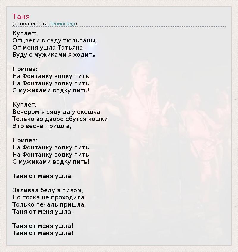 А как ты думаешь, о чем песня "Таня" ?