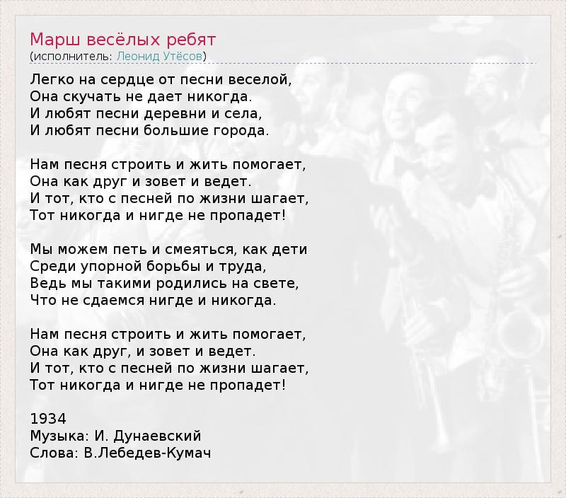 А как ты думаешь, о чем песня "Марш весёлых ребят" ?