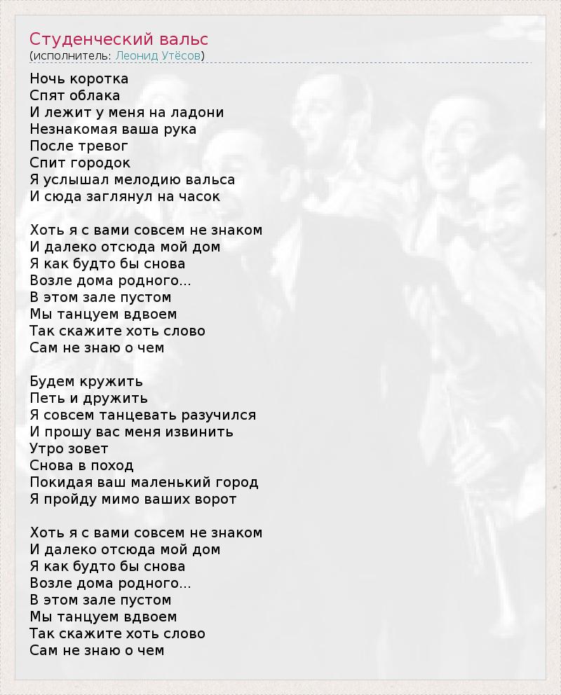 ГлавнаяИсполнителиЛеонид УтёсовСтуденческий вальс