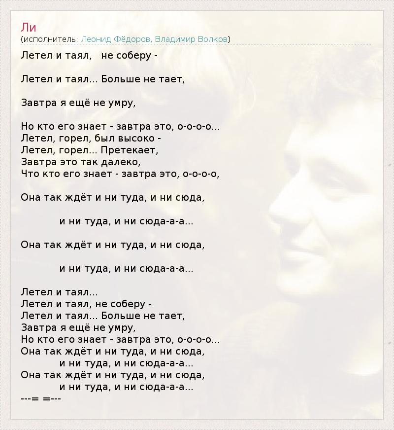 Это интересно:В конце 1990-х, не прекращая работать и выступать в составе "АукцЫона", Леонид Фёдоров стал известен и как сольный исполнитель. Его акустический дебютный CD «Четыресполовинойтонны» увидел свет в 1997 году. Последовавшая затем активная работа совместно с прогрессивным этноджазовым проектом «Волковтрио» нашла своё отражение в записях, изданных на дисках «Зимы не будет» (2000) и «Анабэна»... продолжение