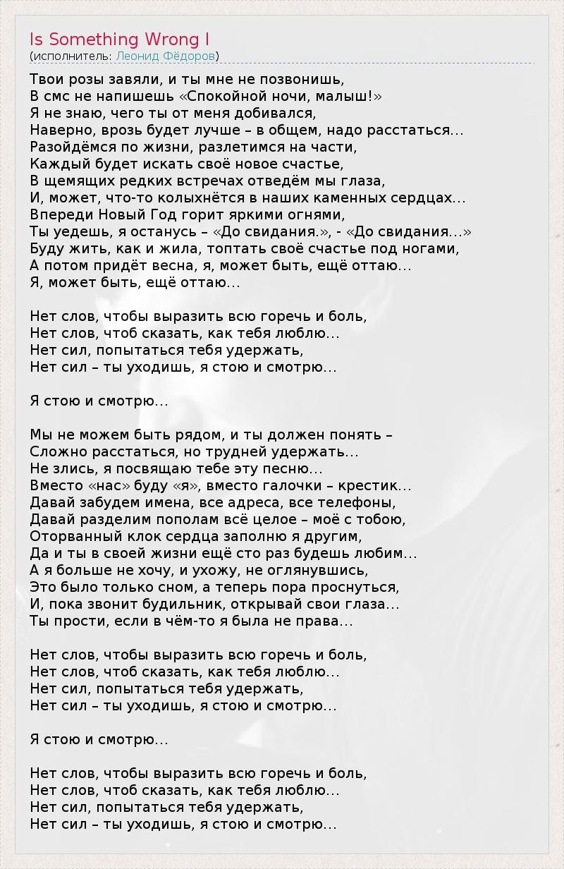 А как ты думаешь, о чем песня "Is Something Wrong I" ?