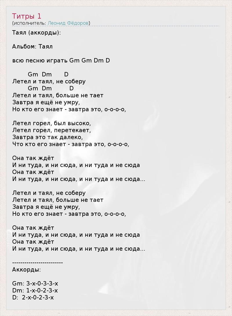 Это интересно:Леонид Валентинович Фёдоров (род. 8 января 1963 в Санкт-Петербурге) — русский авангардный рок-музыкант, лидер группы АукцЫон.За последние 20 лет Леонид Фёдоров справедливо заслужил репутацию одного из лидеров независимой рок-музыки в России. Уроженец Санкт-Петербурга (ранее — Ленинграда), в 80-е гг. ХХ века ставшего центром отечественной рок-культуры,... продолжение