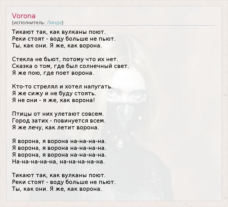 "Ворона" - студийный альбом российской певицы Линды, вышедший в 1996 году. Стилистически альбом "Ворона" включает рок, этническую, электронную музыку и трип-хоп. На диске активно использовались русские фолк-мотивы, а также хор бабушек и детский хор. В некоторых рецензиях на альбом отмечалось влияние готики на музыку и имидж певицы. После выхода "Вороны" Линду стали сравнивать с исландской певицей Бьёрк.
