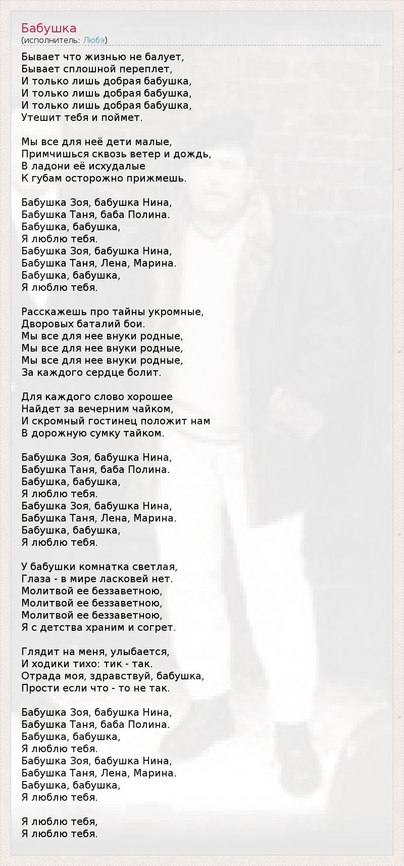 Это интересно:Любэ — российская музыкальная группа, основанная в 1989 году Николаем Расторгуевым и Игорем Матвиенко. В своём творчестве музыканты используют элементы рок-музыки, шансона, русской народной музыки и авторской песни, поэтому «Любэ» сложно отнести к какому-либо одному стилю.Идея создания группы «Любэ» принадлежит продюсеру и композитору Игорю Матвиенко, работавшему в то время в Студии... продолжение