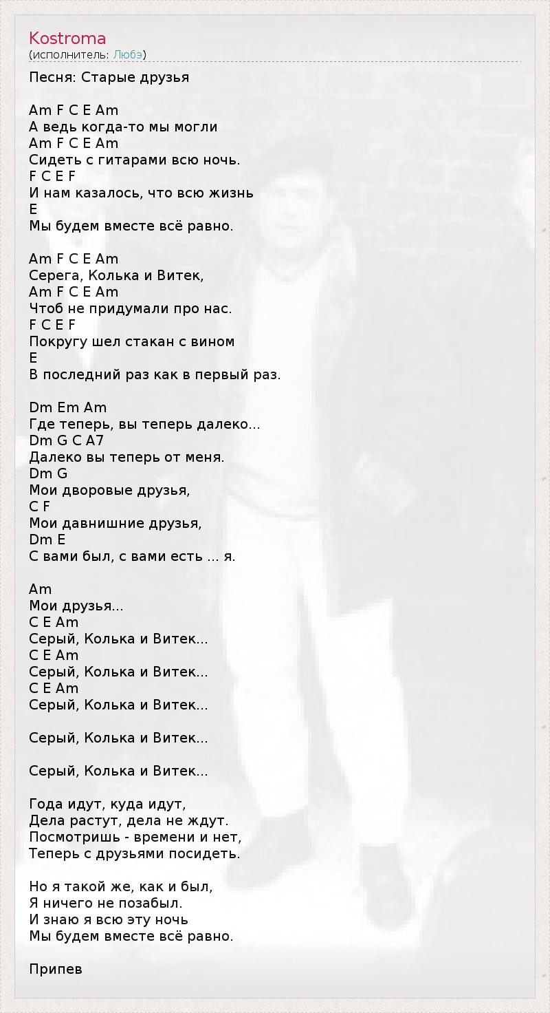 Это интересно:Любэ — российская музыкальная группа, основанная в 1989 году Николаем Расторгуевым и Игорем Матвиенко. В своём творчестве музыканты используют элементы рок-музыки, шансона, русской народной музыки и авторской песни, поэтому «Любэ» сложно отнести к какому-либо одному стилю.Идея создания группы «Любэ» принадлежит продюсеру и композитору Игорю Матвиенко, работавшему в то время в Студии... продолжение