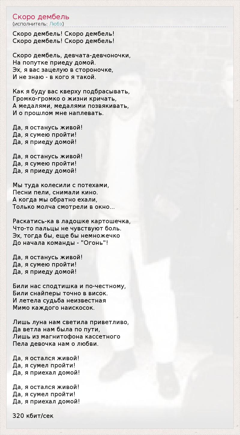 ГлавнаяИсполнителиЛюбэСкоро дембель