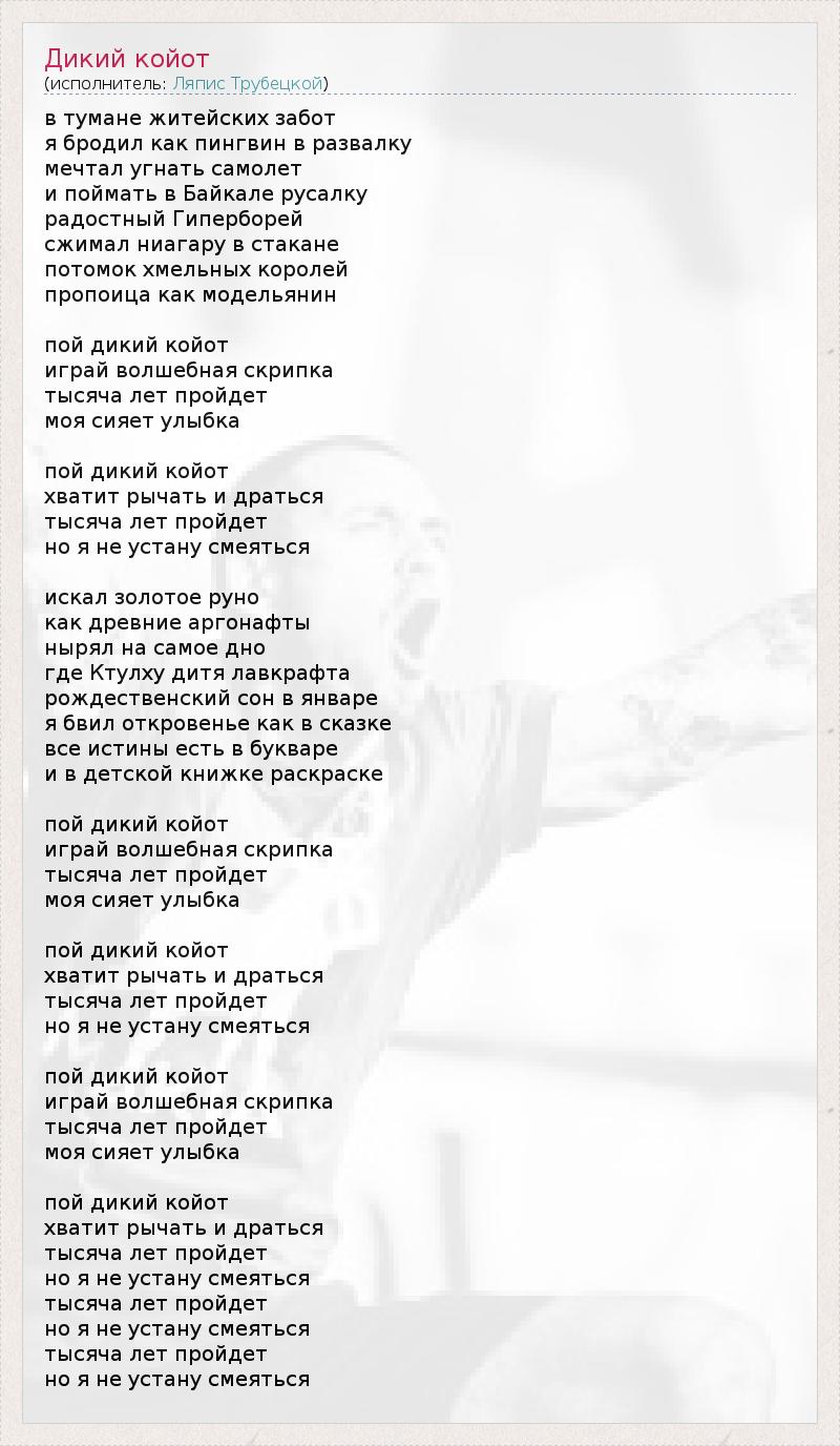 А как ты думаешь, о чем песня "Дикий койот" ?