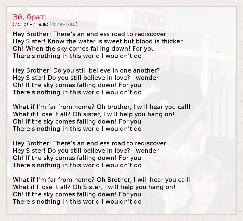 Что если я далеко от дома? О, брат, я услышу твой зов!