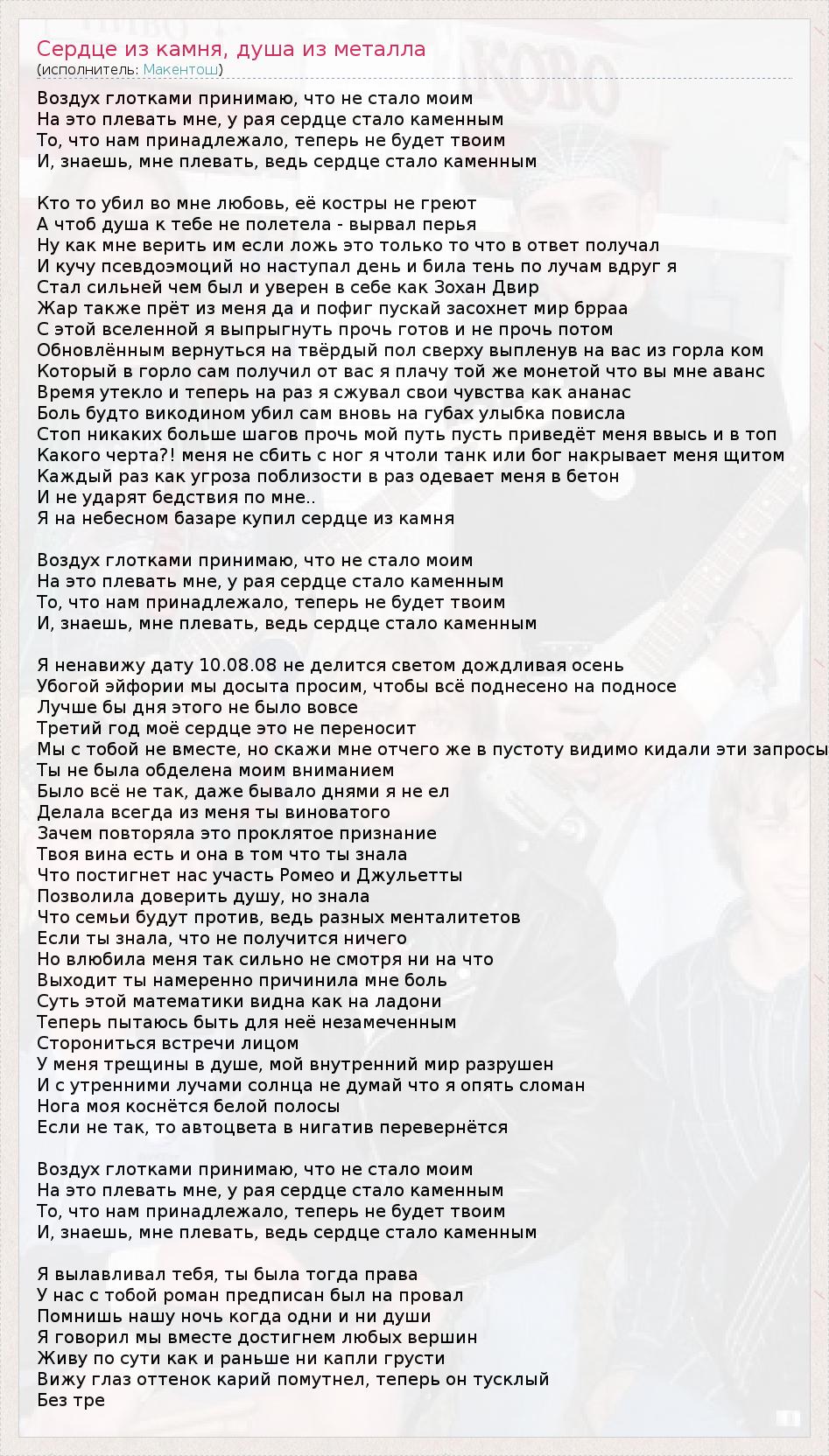 ГлавнаяИсполнителиМакентошСердце из камня, душа из металла