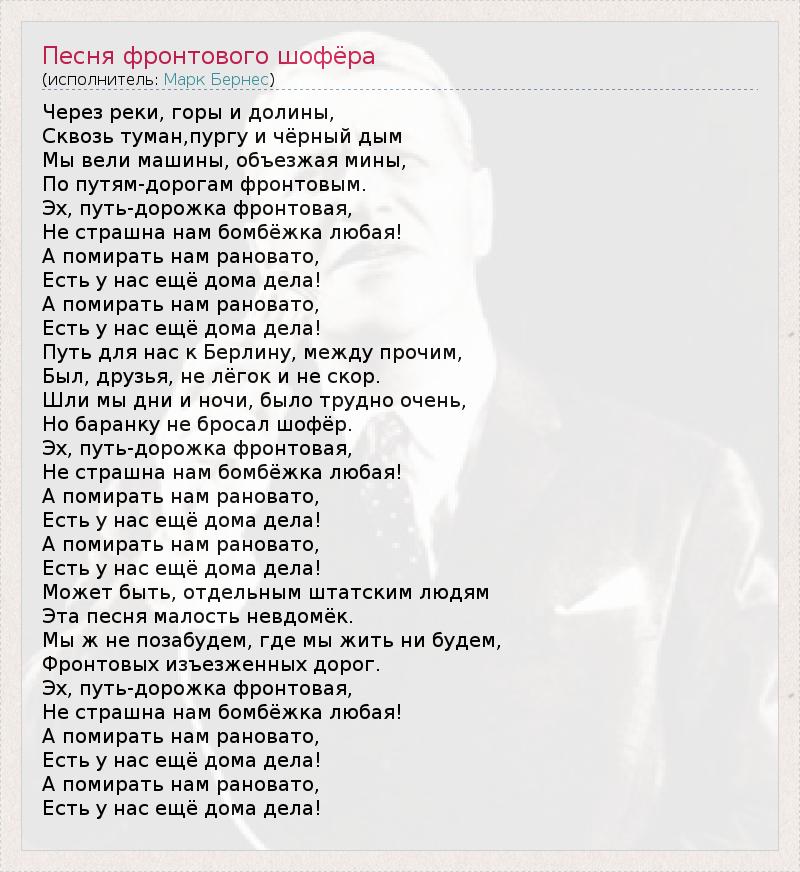 ГлавнаяИсполнителиМарк БернесПесня фронтового шофёра