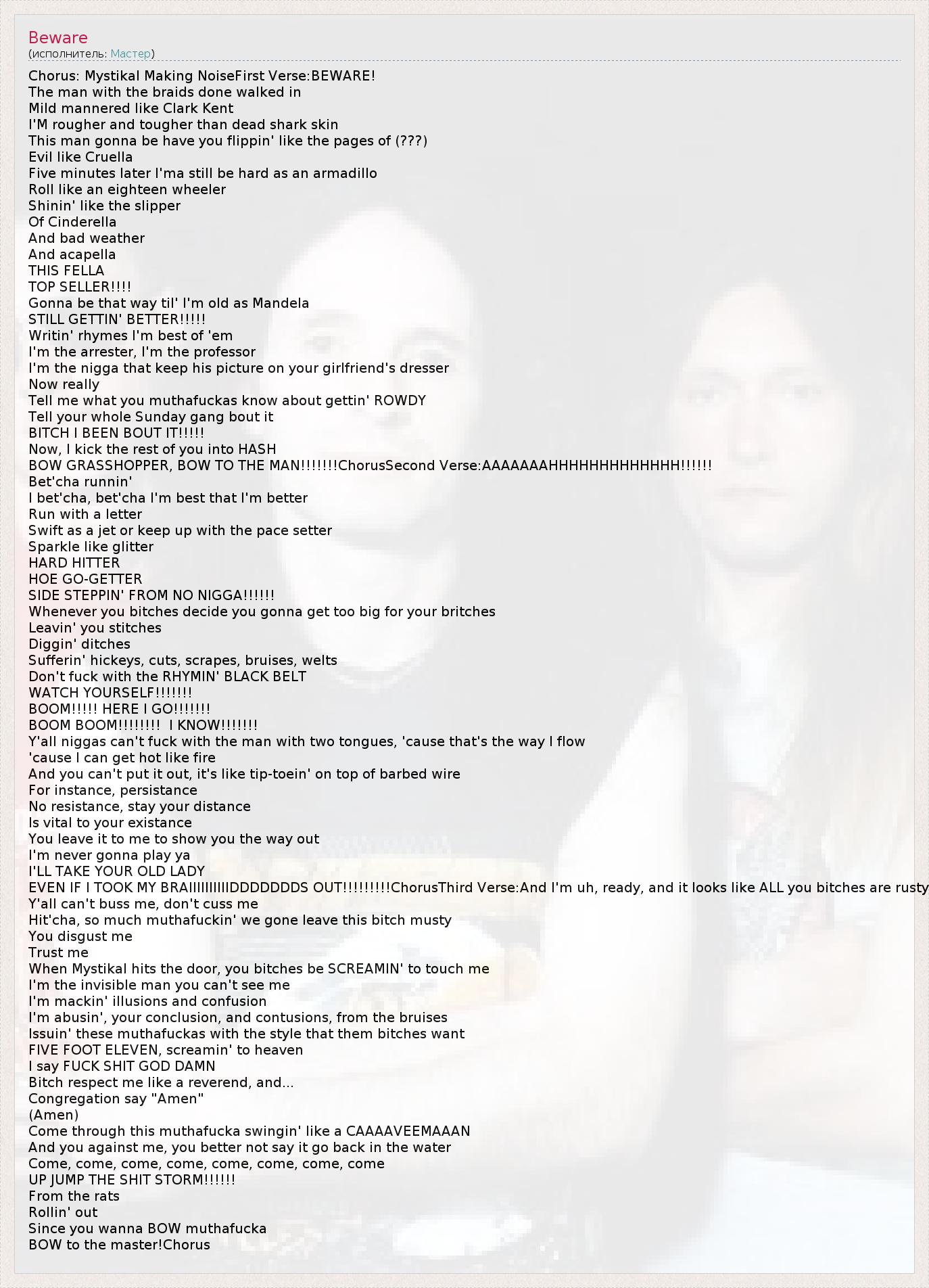 Chorus: Mystikal Making NoiseFirst Verse:BEWARE!