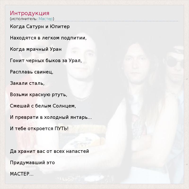 Это интересно:Есть, как минимум, две группы с названием МастерПервая – хорроркор группа из города Загреб.Вторая – Рок-группа Мастер (Мастер) была образована в апреле 1987 в городе Москва года после ухода Андрея Большакова, Алика Грановского, Игоря Молчанова и Кирилла Покровского из группы «Ария». Причиной ухода послужил конфликт с руководителем «Арии» В.Я. Вeкштейном. Последний... продолжение